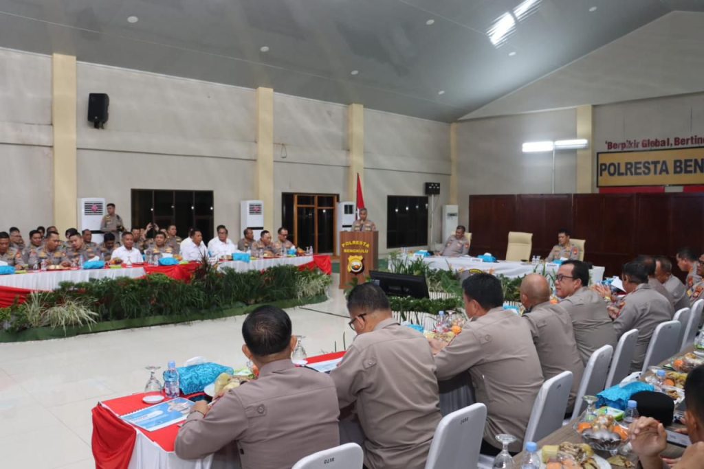 “Di sisi lain, dampak global juga mulai dirasakan di daerah, salah satunya kenaikan harga plastik di Kota Bengkulu hingga dua kali lipat. Kondisi ini berpengaruh terhadap pedagang, usaha kecil, dan daya beli masyarakat, yang berpotensi menimbulkan kerawanan sosial,” tambahnya. Karena itu, ia meminta Intelkam dan Binmas melakukan monitoring harga, deteksi dini, dan penguatan komunikasi dengan masyarakat serta Pemda.