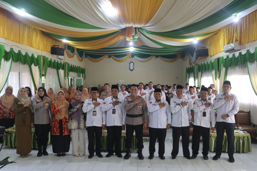 Kapolres Kepahiang AKBP Yuriko Fernanda, S.H., S.I.K., M.H. memimpin langsung upacara sebagai inspektur sekaligus membuka kegiatan FGD yang dihadiri unsur Kemenag, tokoh agama, MUI, perwakilan sekolah, kepala desa, serta berbagai elemen masyarakat.