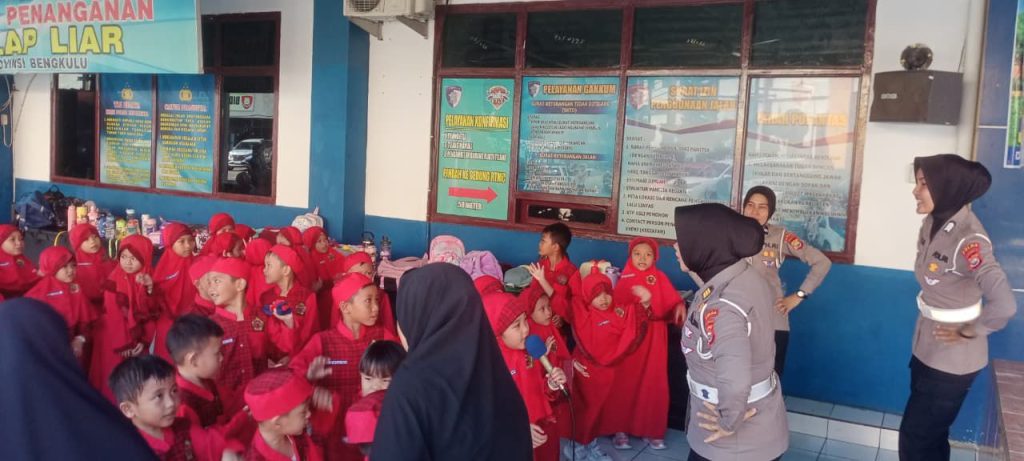 Bengkulu, Penalikenews.com – Suasana ceria terlihat di lingkungan Direktorat Lalu Lintas Polda Bengkulu saat menerima kunjungan siswa-siswi TK Alqiswah dalam kegiatan outing class bertema Polisi Sahabat Anak, Senin, 20 April 2026. Kegiatan ini menjadi momen edukatif yang dirancang untuk mengenalkan dunia kepolisian kepada anak-anak melalui pendekatan yang menyenangkan dan mudah dipahami.